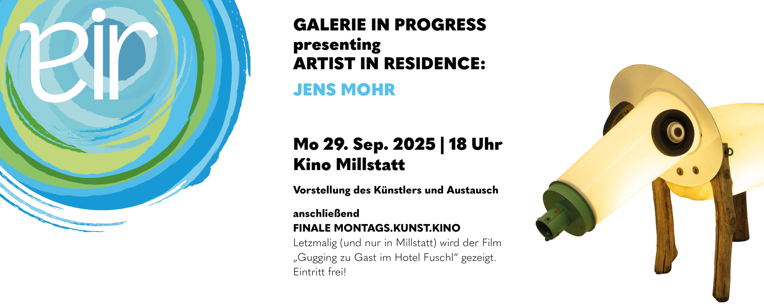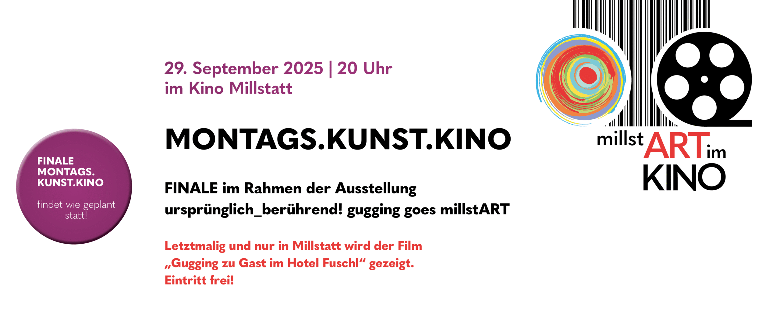 Es war ein Leichtes, Max Wohlkönig vom Kino Millstatt für eine Zusammenarbeit zu begeistern. So können wir im Rahmen des millstART Programms erstmalig Kinofilme als einen weiteren Zugang zur Ausstellung anbieten. Themenbezogene Kurzführungen mit Bezug zum anschließenden Kinofilm stimmen auf die Filmvorführungen im MONTAGS.KUNST.KINO ein.