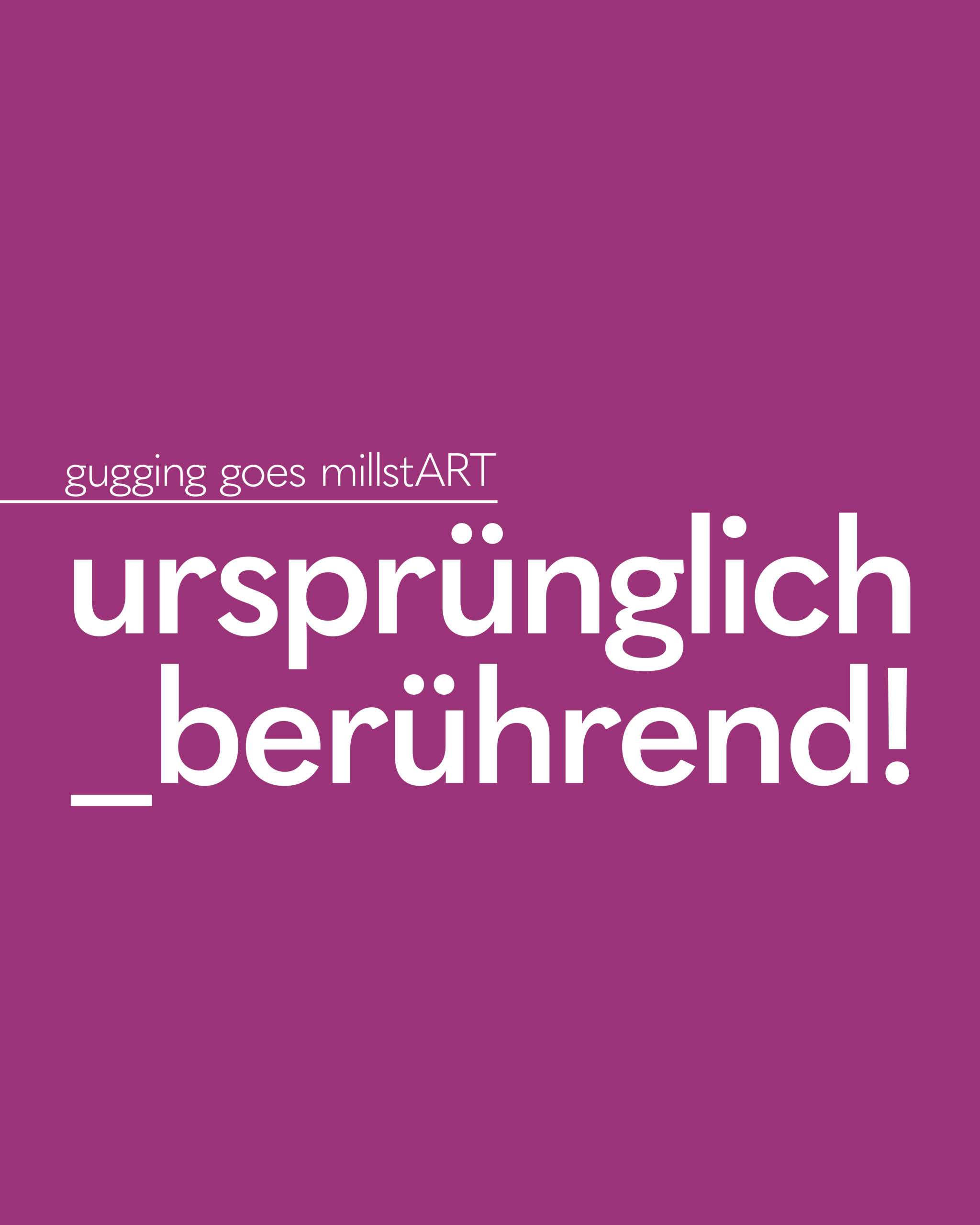 Im Programm 2025 mit dem Titel - ursprünglich_berührend! - öffnet der Kunstverein millstART die Türen zur Art Brut. Die Ausstellung zeigt eine repräsentative Auswahl an Werken der Gugginger Künstler und ihrer internationalen Kolleg:innen sowie zeitgenössischen Wegbegleiter:innen.