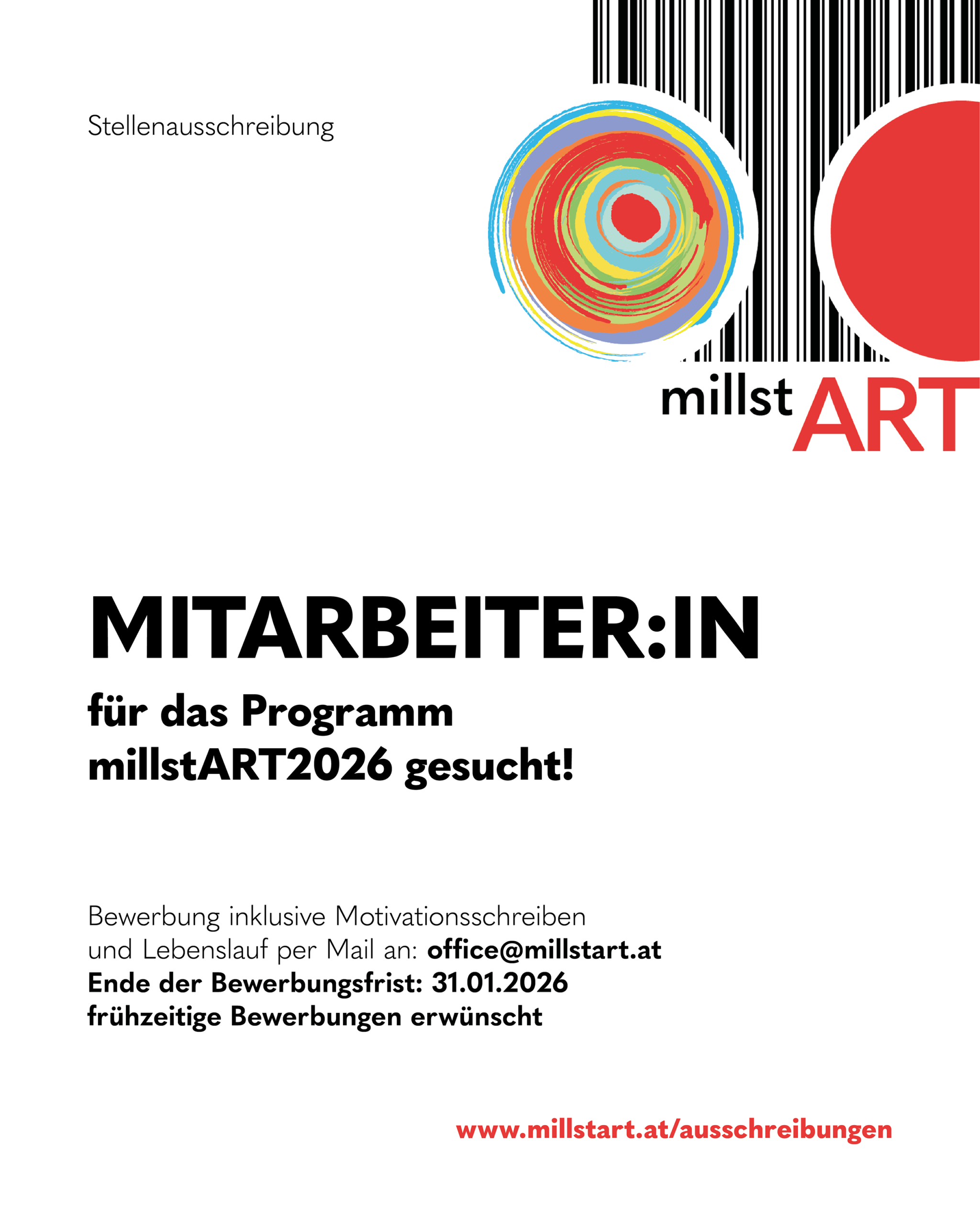 und Lebenslauf per Mail an: office@millstart.at
