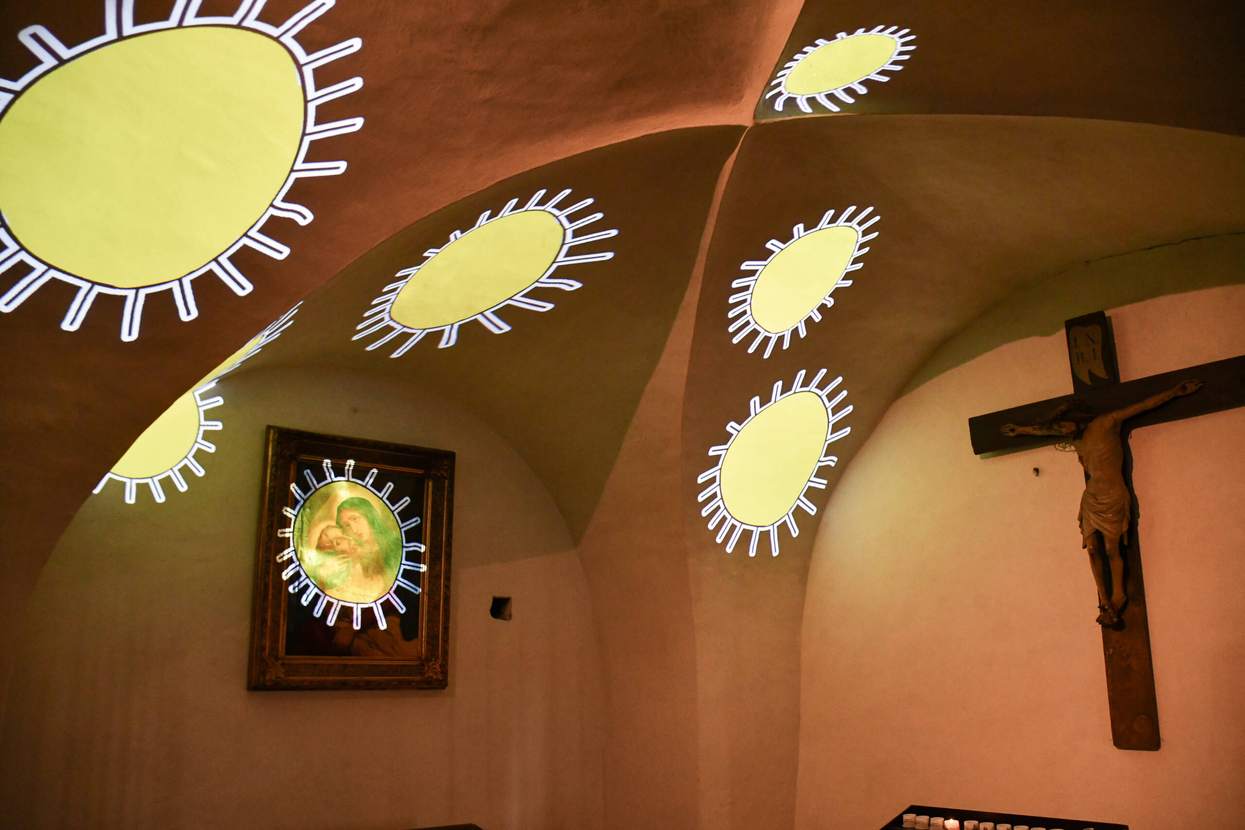 Freundliche Sonnen strahlten bei der Eröffnung der Ausstellung des Vereins millstART mit dem Titel „ursprünglich.berührend“ im Kreuzgang des Stiftes Millstatt.